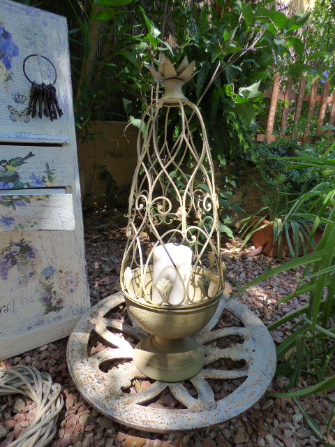Unas velas en forma de rosa, unas flaneras de metal y aquel soporte que os enseñé hace semanas.....al que se le puede quitar la parte calada de arriba