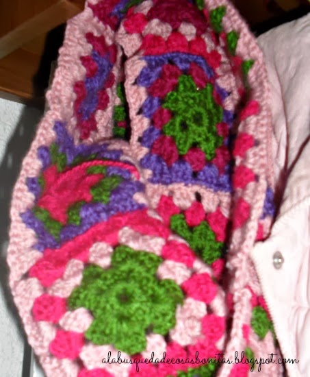 Pero además, como iba a estar con mi suegra y las tardes de chimenea invitan al crochet, me llevé algunos ovillos de lana, para hacer una bufanda granny para Celia...