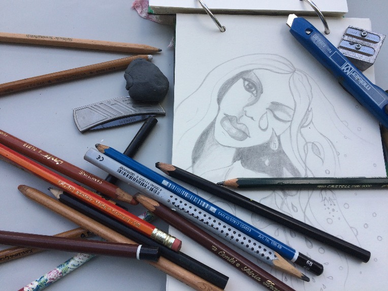 Lápiz/grafito/carboncillo...: Es muy versátil. Si estás fuera, de paseo... no se necesita más. Tienes la opción de poder borrar. Ideal para ejercitarse con el dibujo y las sombras