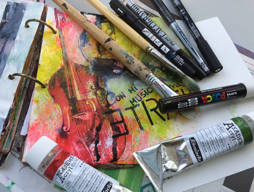 Mixed media: De gran libertad, en un trabajo podemos juntar varias de las técnicas arriba mencionadas y otros medios también como el gesso, pasta para relieves, objetos, etc.