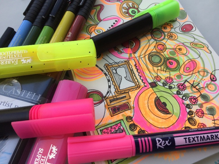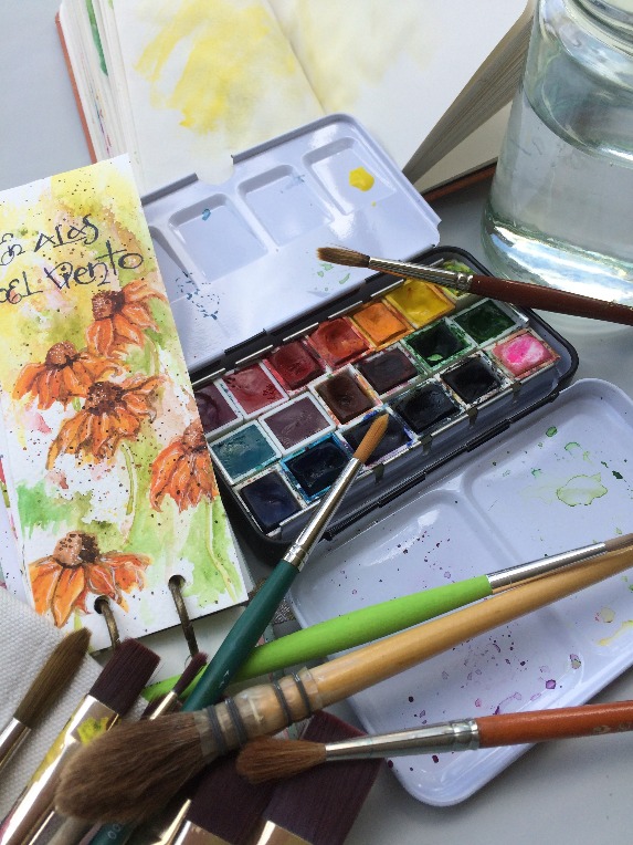 Marcadores/rotuladores/resaltadores... : Su gran pro es la rapidez con que se puede trabajar, es sobre todo para bocetos. Son los grandes aliados del que lleva un diario porque puede hacerse de todo con ellos: dibujar, escribir, dar color, resaltar...
