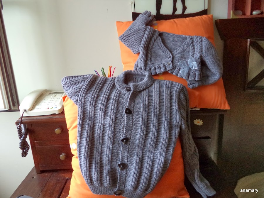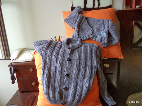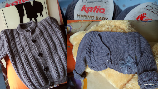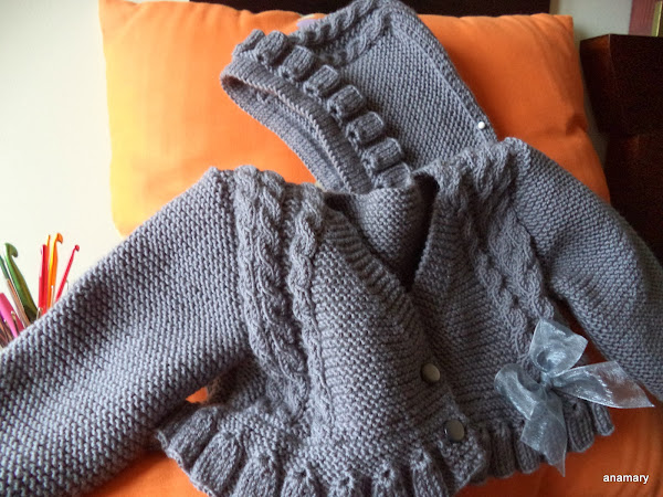 chaquetita capotita para la niña y para el peque una chaqueta tipo cazadora...la del niño lleva unos botones mu originales ,los coloque uno del derecho otro en sentido contrario...la de la niña con unas trenzas y rematandola un volante mu elegante