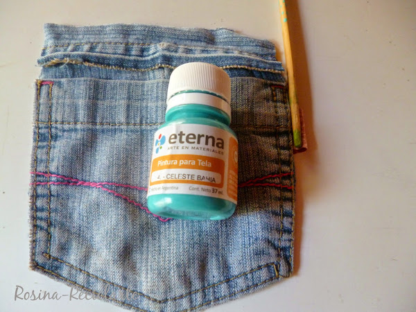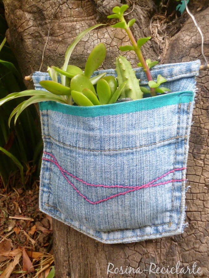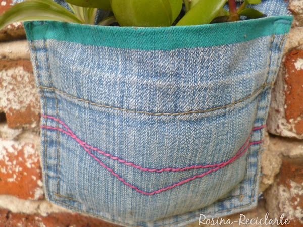 Incluso en mi última ocurrencia,el bolsillo del jean que me sobró de cuando hice estas fundas de almohadones.