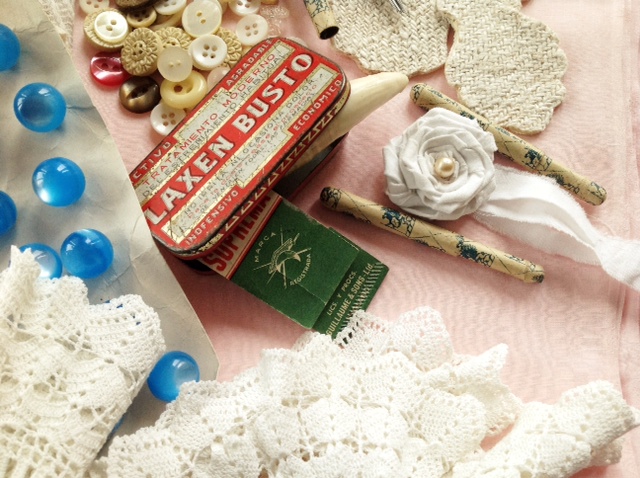 No es mucho, pero me encantan los cartones con botones, las pequeñas tijeras muy usadas, la pseudo-cruz militar, los alfilateros.....