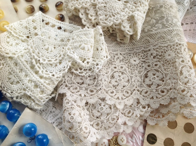 El encaje de valenciannes. Me daba miedo que con el agua perdiera el color ( ligeramente sucio), pero.... hubo suerte.