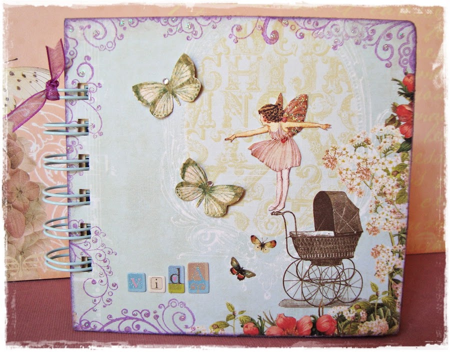Después de mucho tiempo sin actualizar, hoy os voy a mostrar una pequeña libreta muy especial para mi. Es una libreta que en sí misma cuenta una historia, la historia de un descubrimiento. Hace cosa de dos meses me enteré que (si todo sale como hasta ahora) el verano que viene vamos a tener un precioso/a bebé. A partír de entonces todo ha sido felicidad, mezclada con ganas de que pasaran los tres meses de riesgo, cansancio, sueño, pocas ganas de scrapear y de ordenador... y muchas ganas de decirselo al mundo. El viernes fuimos a la primera ecografía, y de momento todo muy bien, así que ya es hora de enseñaros esa pequeña libreta que nace de estos nuevos sentimientos y sensaciones... ains... que cosas...