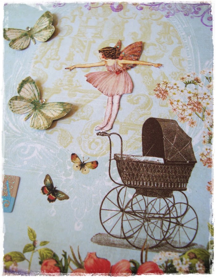 Los papeles ya lo dicen todo (Webster pages), y me hacía gracia ponerle el hadita en equilibrio, que creo que es como ultimamente me siento. Los colores mis pereridos, y por supuesto mariposas y stickles que no pueden faltar.
