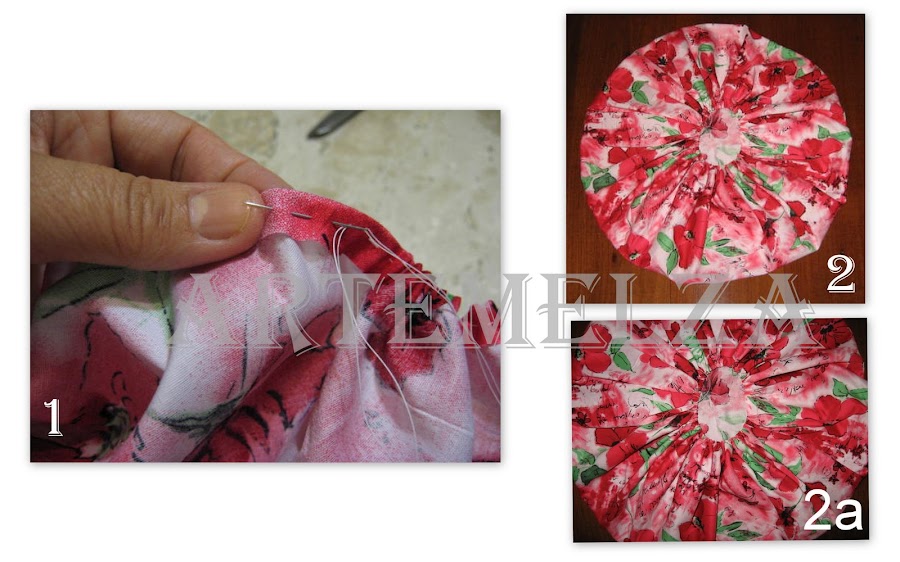 1- Hagas un ruedo, hilvanando, de unos 1,5 cm y empiece a fruncir el yo yo.