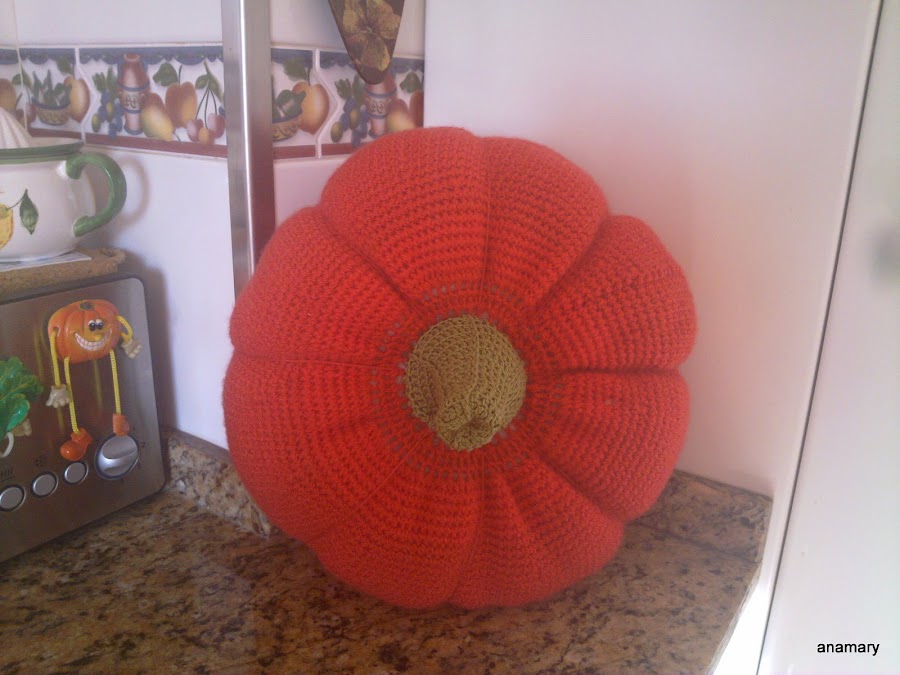al llegar al alto,volvemos hacer esas dos vueltas ,pero ahora en vez de aumentar vamos a disminuir,trabajando los 2 puntos juntos hasta que nos quede un pequeño redondel para poder rellenar la calabaza