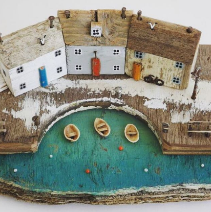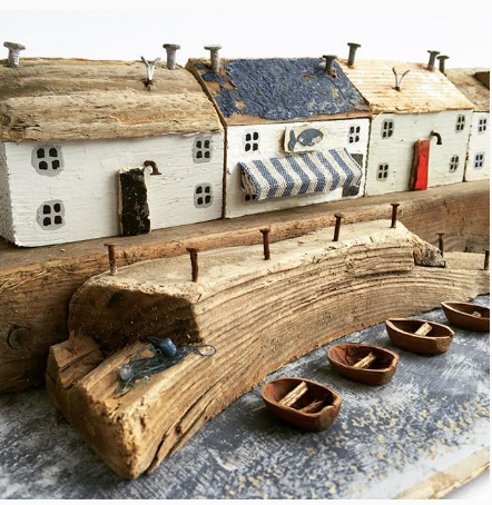 Bajo el nombre de @kirstyelson y con casi 12000 seguidores, esta artista publica imágenes de pueblos pesqueros hecho a partir de trozos de madera, palets o troncos. Aprovecha las propias imperfecciones del material y reutiliza clavos y pintura para darlos vida y convertirlos en auténticos pueblos, de esos con encanto que gusta descubrir cuando viajas.