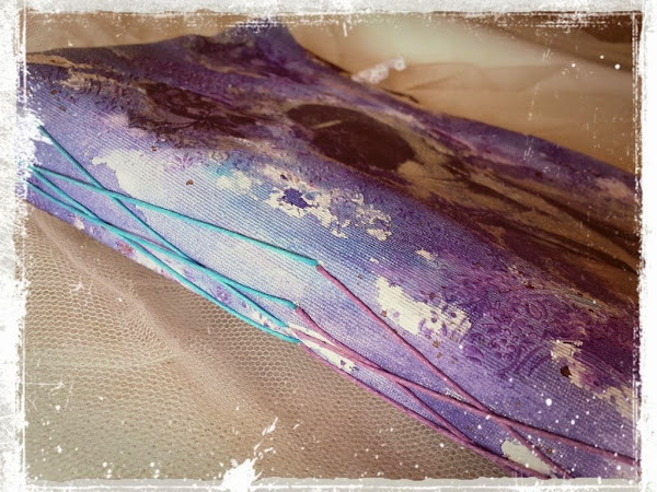 El color lo aportan las tintas en spray en tonos azul y morado que me parece una perfecta combinación porque acaban uniéndose sin querer, consiguiendo esos preciosos tonos, y ese efecto de manchado.
