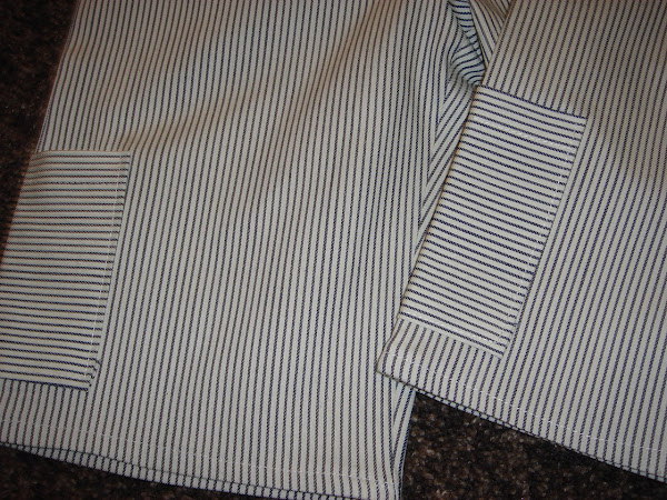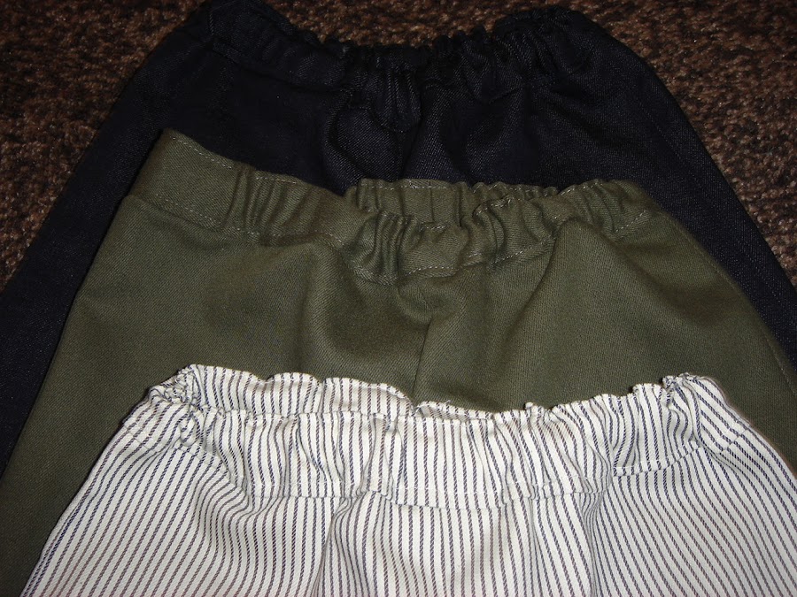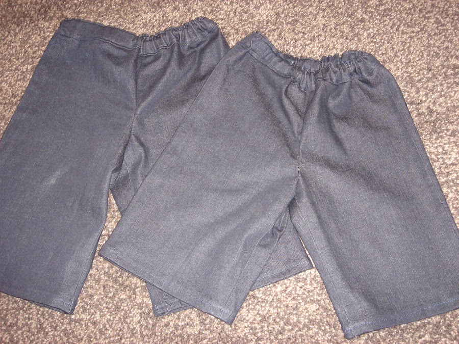Las segundas estan realizadas en tejiod de algodon tejano pero con dibujo de rallitas, le he añadido un bolsillo en un lateral de la pierna con las rayas al contrario para que destaque.