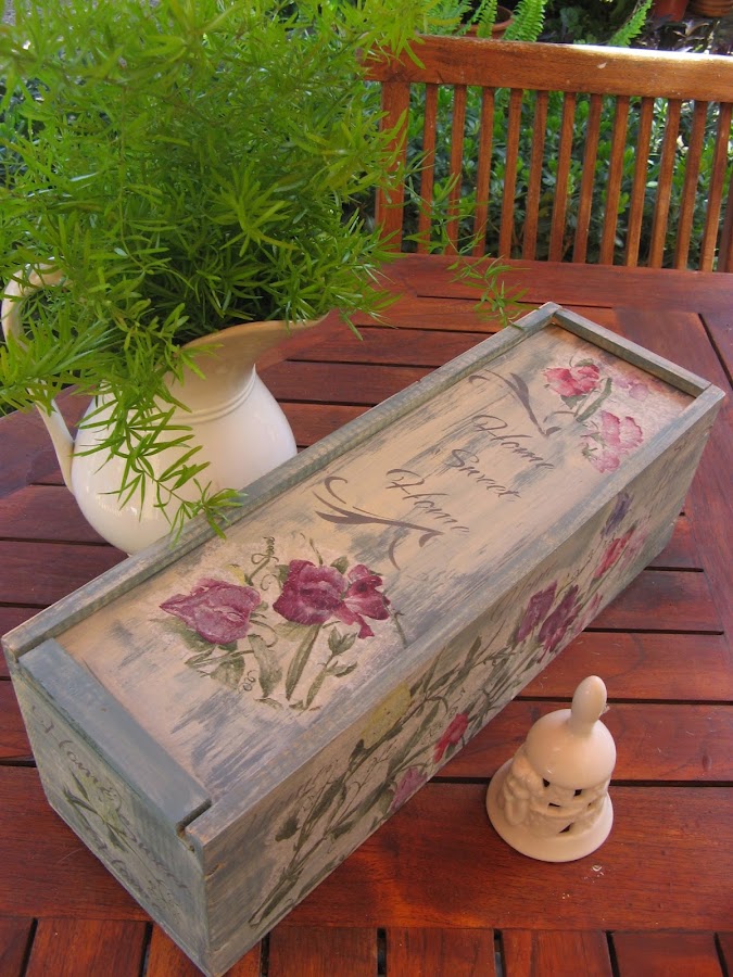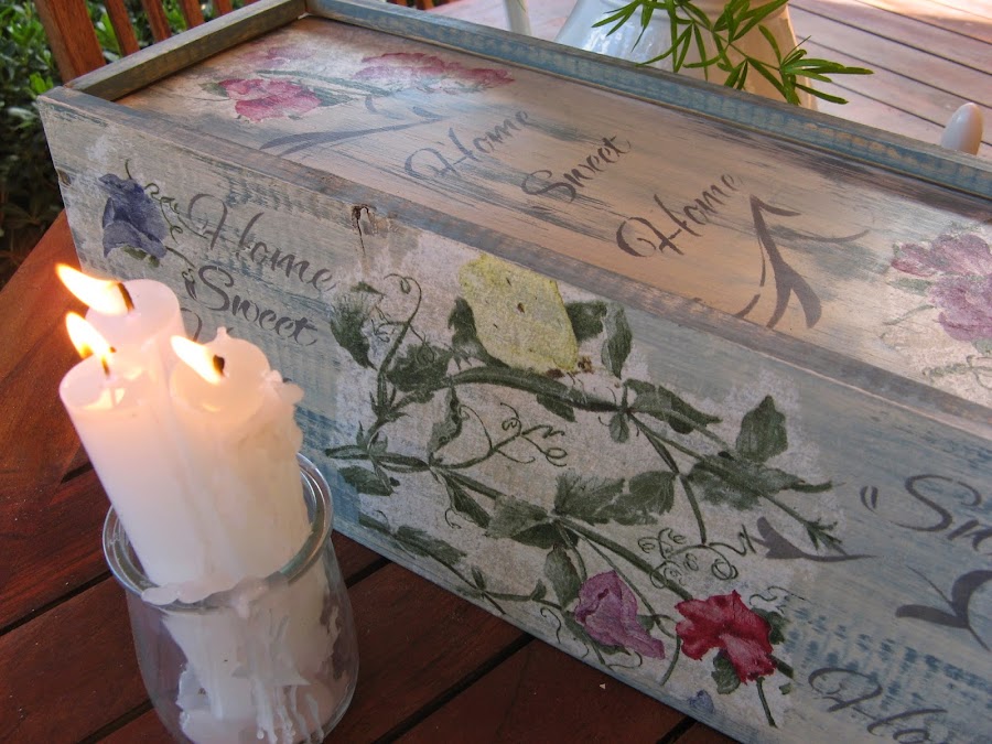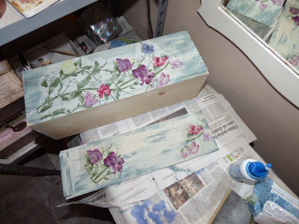 Es con decoupage y estarcidos como siempre, así que os pongo solo fotos.....