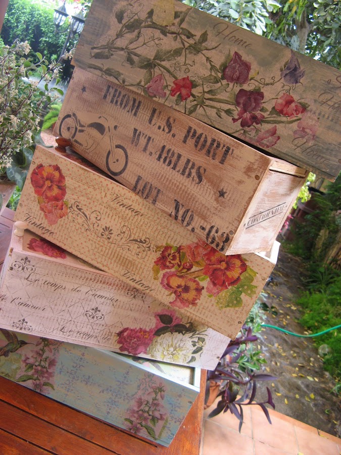 Como os conté, la semana que viene es la feria artesanal y estoy terminando cosas para llevar. Las cajas son lo que tiene más salida asi que ya veis......cajas, cajas y más cajas...además me encanta hacerlas....lo único es que a lo mejor os canso un poco....