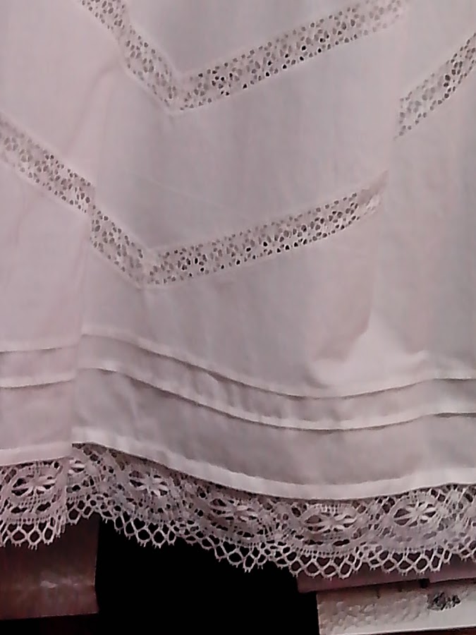 Realizada en algodón, con puntillas de hilo. 4,40 metros de contorno.