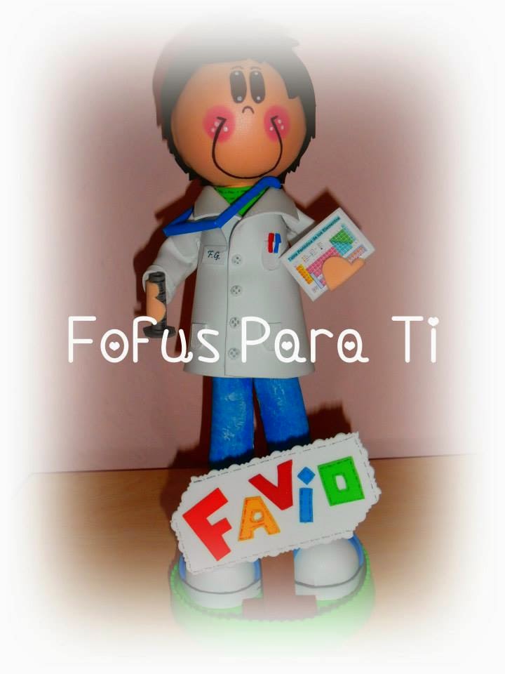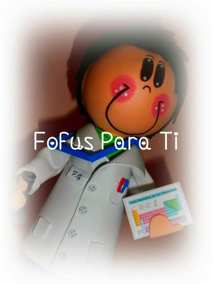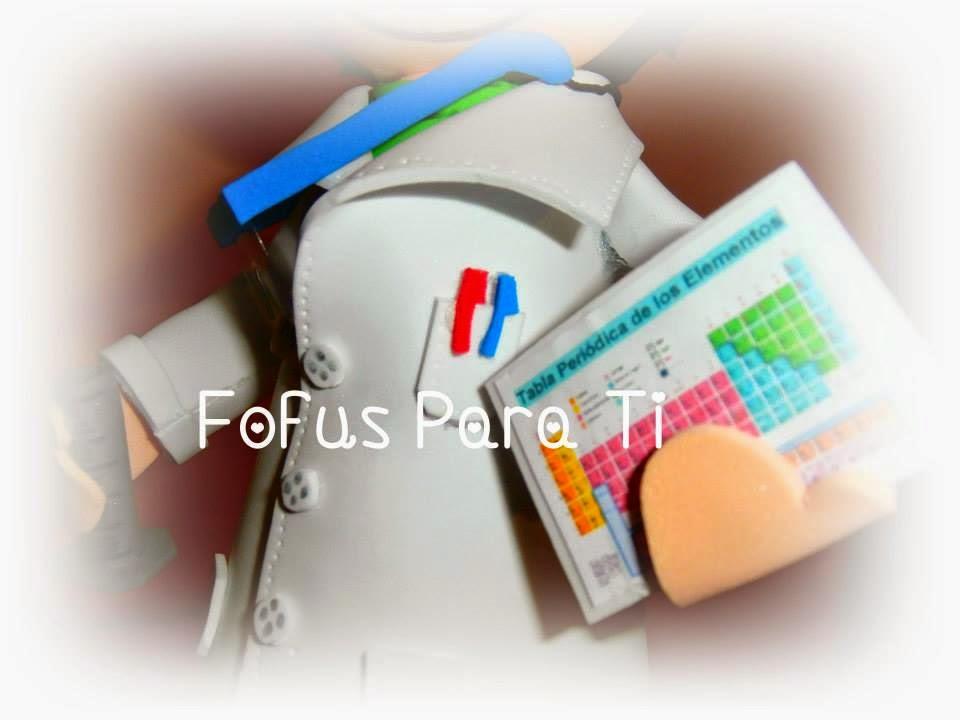 ¡Un fofu químico con todo detalle! Su bata, su tabla periódica, sus gafas...