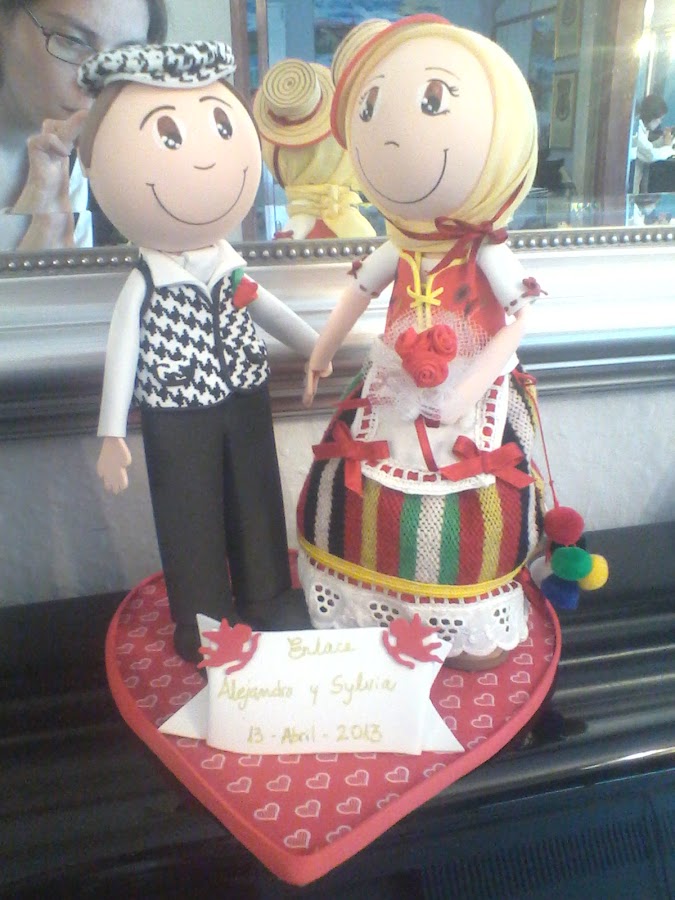 Estos son Restituto y Maria, celebran sus 50 años de casados y sus hijos han querido hacerles esta fofucha con sus trajes de novios y su aspecto actual..una idea muy original. Muchas felicidades!!