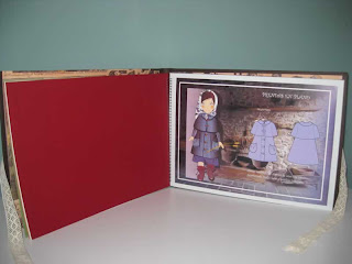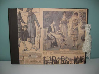 Segundo proyecto: Inspiración "Baúl de mi abuela" y como no, le pusimos el papel de las mujeres antiguas que tanto le gustaba. Cierre con puntilla en color marfil.