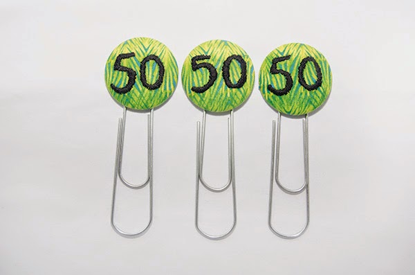 Para celebrar una fecha tan señalada, una conocida nos dijo que quería hacerles un regalito especial a sus invitados, y como ya conocía lo que hacemos, nos encargó unos marca páginas, con la condición de que fuesen en tonos verdes y que llevasen el 50 bien visible. ¡Nos encanta que Cuento Cuentas pueda formar parte de momentos tan especiales!