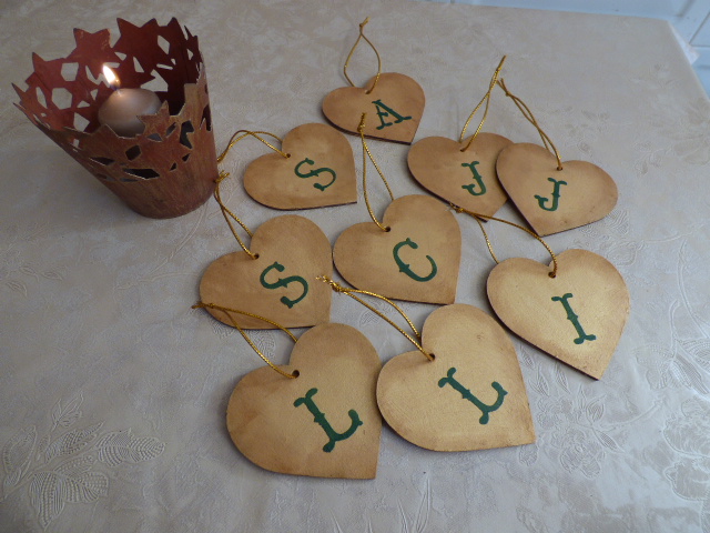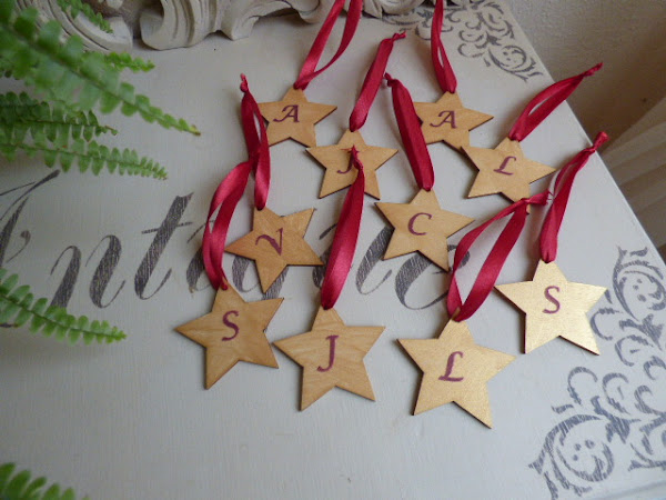 Consuelo me ha encargado este año unas estrellitas decoradas con las iniciales de los comensales que tendrá la Nochebuena. Luego cada persona se llevará su estrellita con inicial, a su casa. Me encanta la idea....el año pasado fueron corazones....