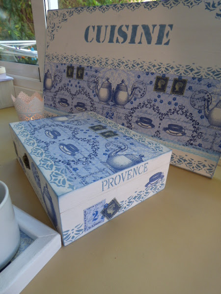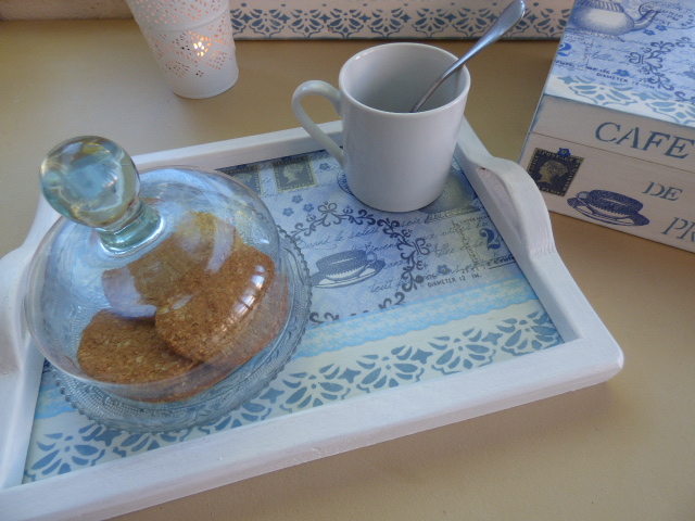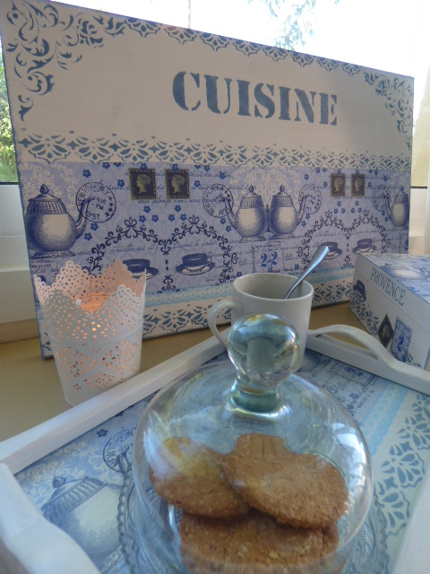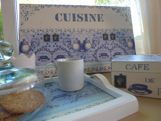 Una caja para las infusiones, una bandeja y una tabla bien grande para colocar decorativamente, detrás de los fogones.