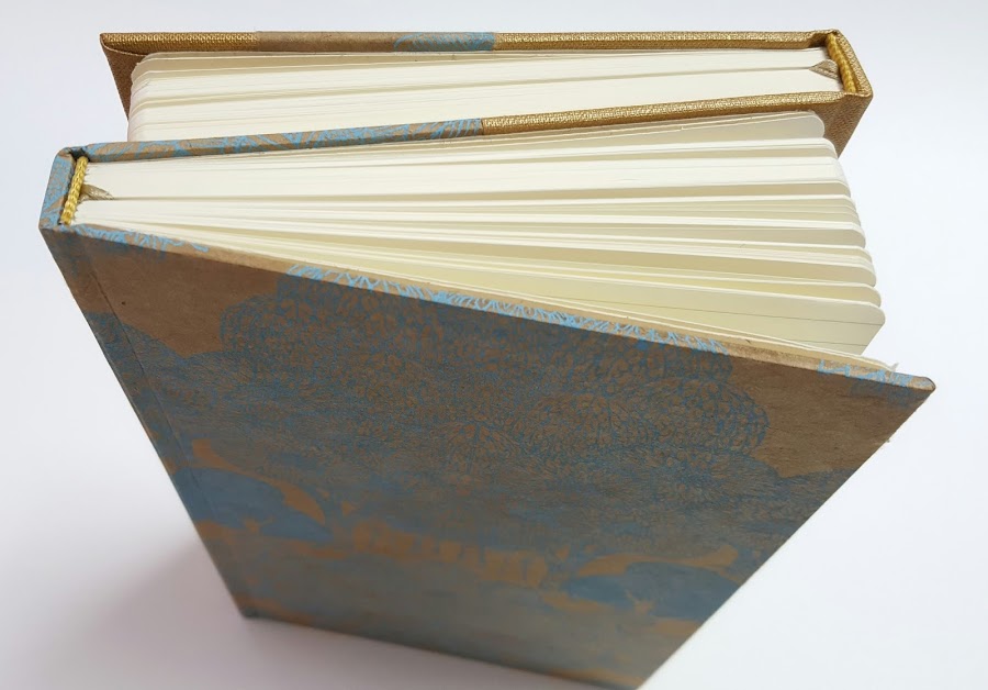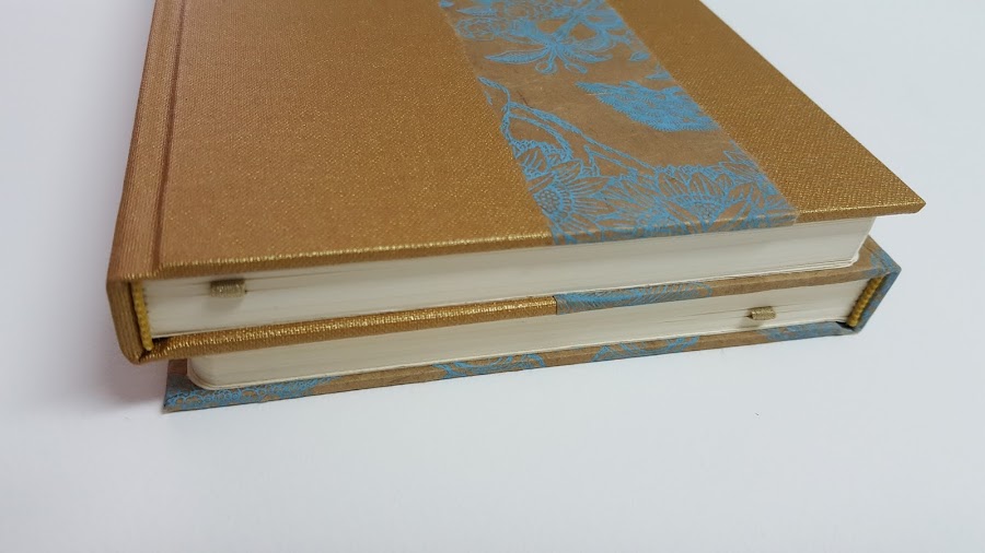 La encuadernación dos a dos esta construido con los lomos enfrentados, este libro esta formado por dos encuadernaciones enteras ( tres tapas ) y comparten una de las tapas en común.