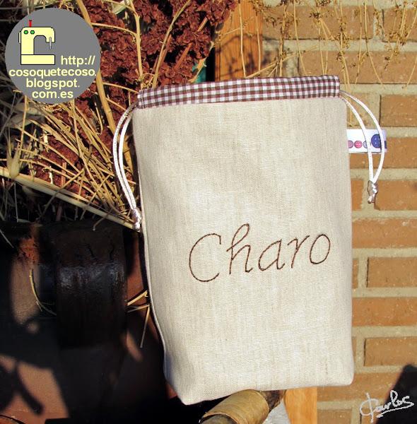 Y como sé que a Charo le gustan mis letras bordadas, le llevé una bolsita con su nombre, para que no se la pueda quitar nadie.