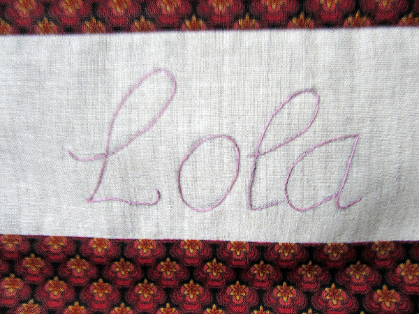 Por supuesto que le bordé el nombre con los hilos que ella me regaló de "la abuela Dolores".