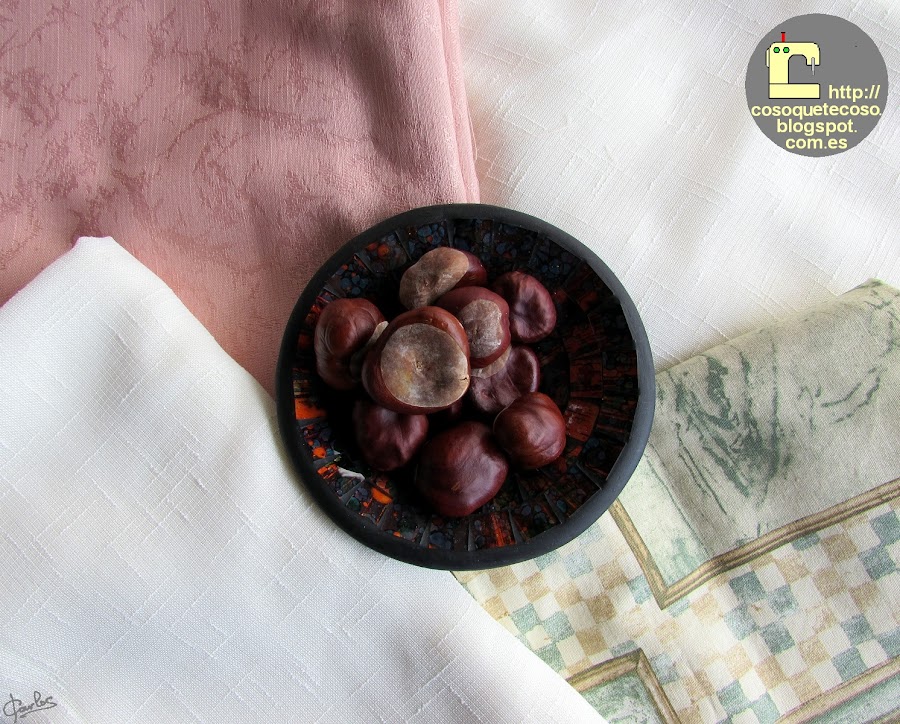 Las castañas no, esas son de atrezzo, las recojo del bosque en mis paseos vespertinos.