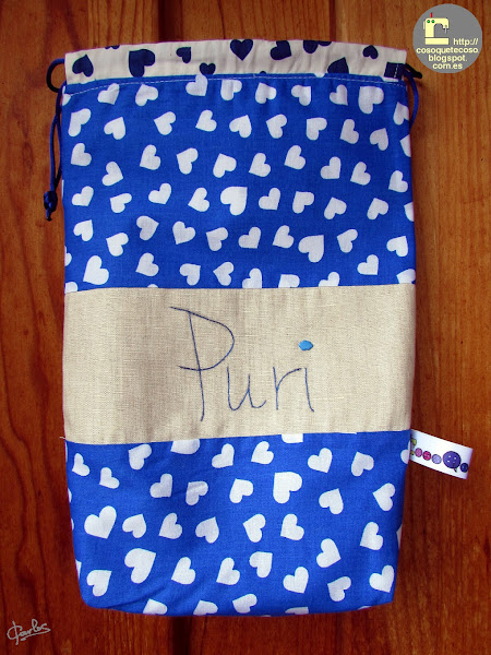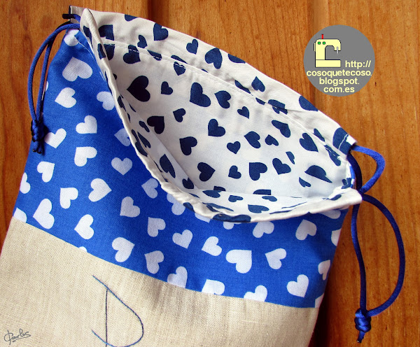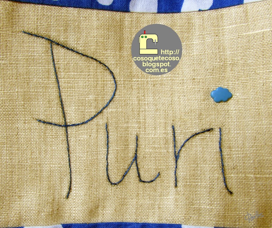 Quedamos en su casa y me pareció oportuno llevarle un detallito. Como sé que le gustan mis bordados, le regalé una bolsa con su nombre.