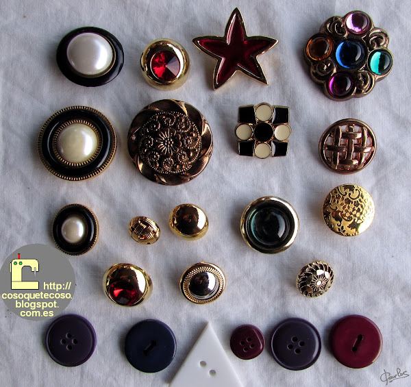 Y como ella es tan generosa, me sacó una caja de botones de pasarela. Si lo habéis leído bien, de pasarela, porque ella ha hecho trajes para desfilar, y me dijo que eligiera todos los que quisiera. Aquí una muestra.