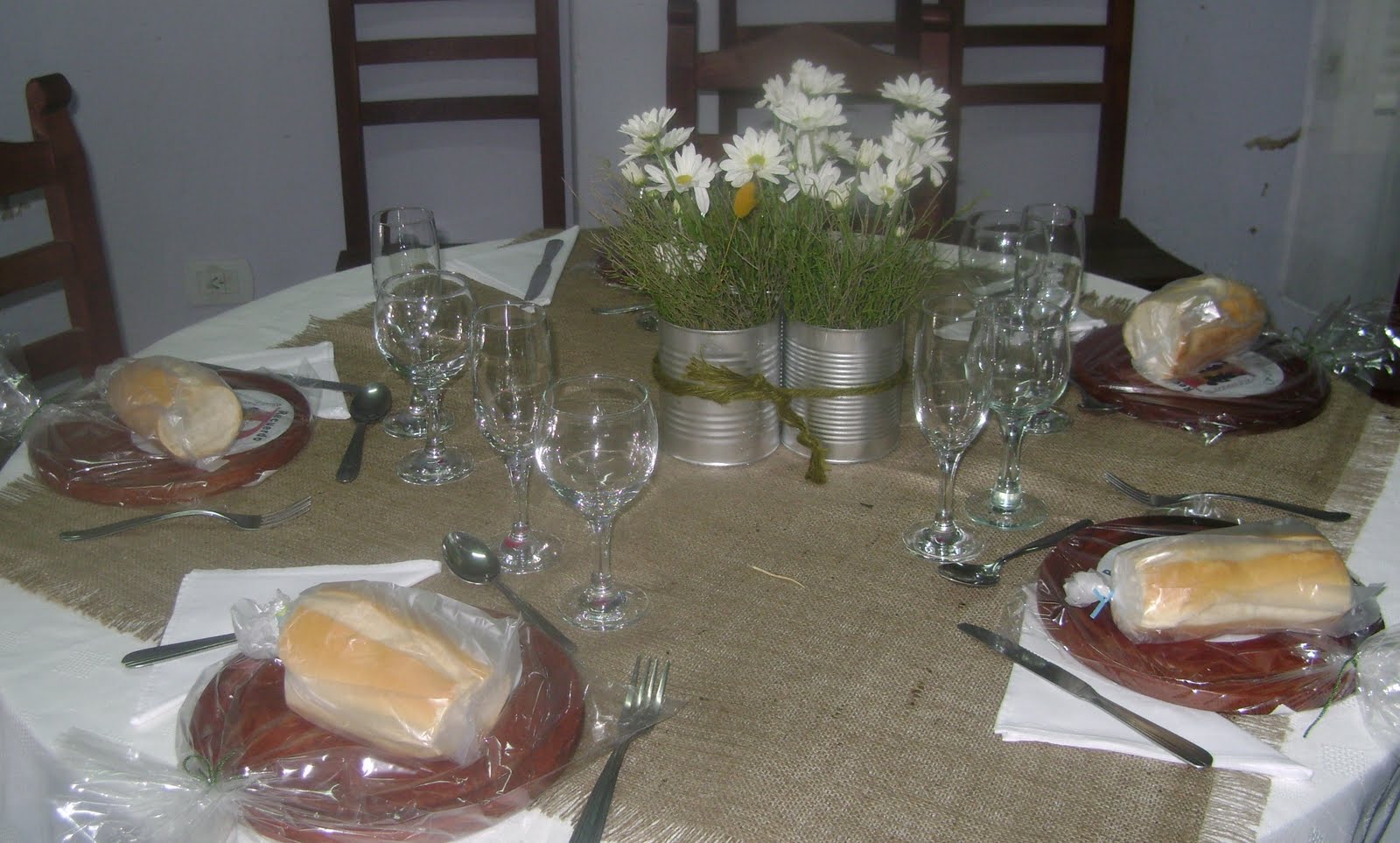Los centros de mesa y la decoración general del salón a cargo de mis primos pampeanos,Leonor, su marido José Luis, Carolina, Francisco y a quien encontraron a mano , era onda rústica de campo...Pre-cio-so!