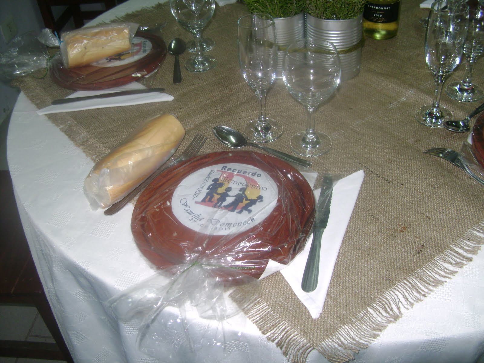 Uno de los obsequios para cada uno de los presentes por parte de quienes organizaron....Los platos de madera con el borde pirograbado : "Familia Domenech"