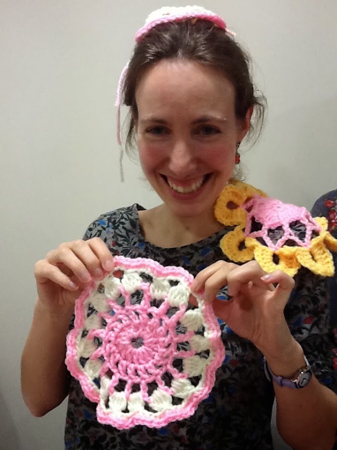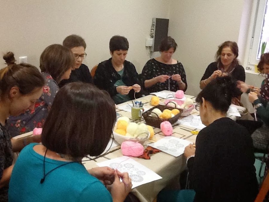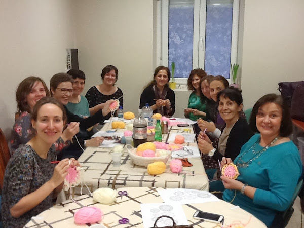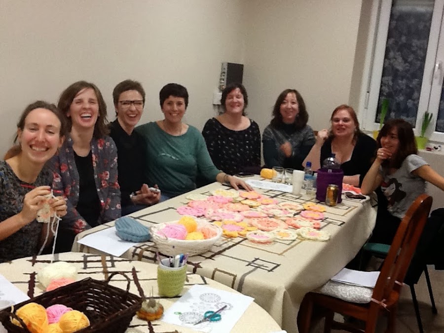 Pasamos una tarde muy agradable y productiva, siguiendo patrones y tejiendo mandalas para este hermoso proyecto