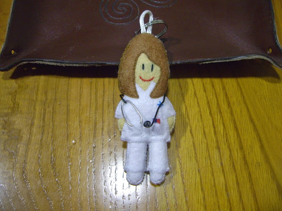 Enfermera de fieltro con el pelo castaño en versión llavero.