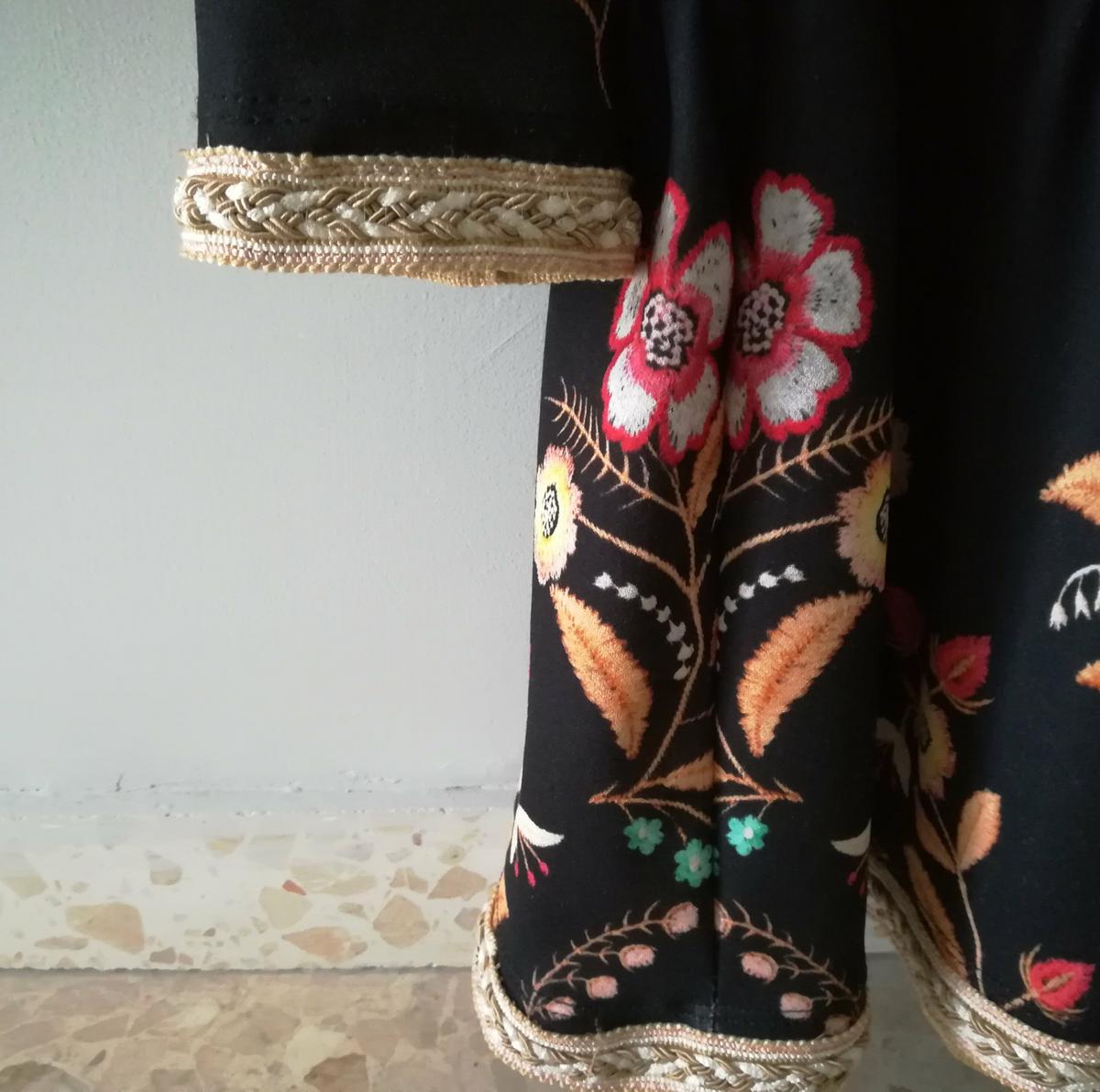 I decided to take a thick piece of ribbon in beige, white and sand color to sew it to the end of the sleeves and the skirt, something that enlarges it just a centimeter. However it gives the dress a more elaborated touch, putting certain distance between it and all its “cousins” in the streets.