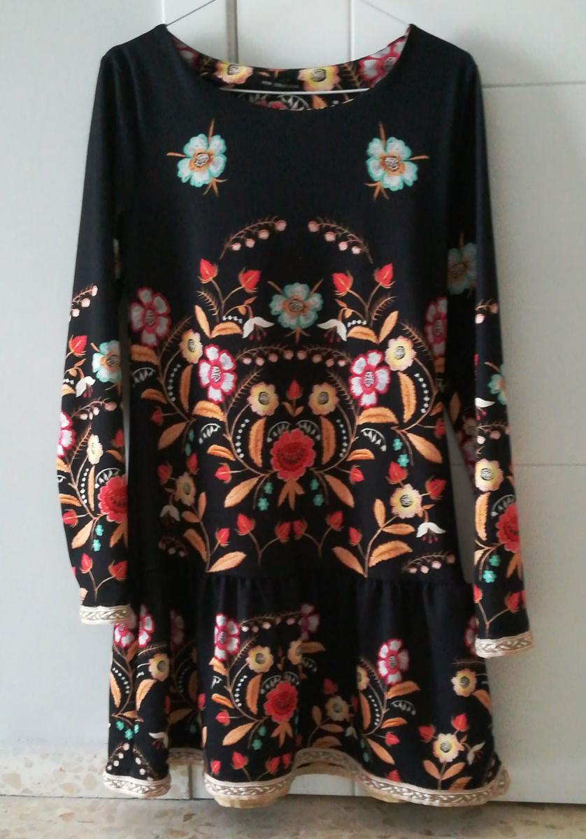 Pues eso me pasaba con este vestido, que me encanta tal cual es, pero que he visto muchas veces ya sea con el mismo estampado (aunque confieso que nunca con el fondo negro) o tipo de corto. Además me queda bastante corto y ahora que llega el buen tiempo y las medias tupidas y las botas mosqueteras vuelven al ropero, me parece poco adecuado para acudir a mi trabajo.