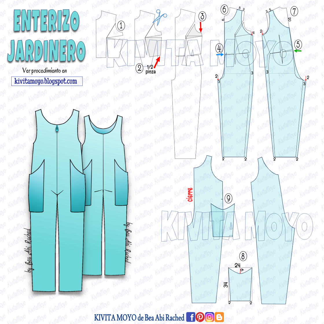 Por ultimo efectuar los dobladillos. Terminada la prenda. Te invito que sigas mi cuenta en Instagram @kivitamoyo_beaabirached y del mismo modo puedes visitar mi pagina en Facebook vinculada con este blog, KivitaMoyo de Bea Abi Rached.
