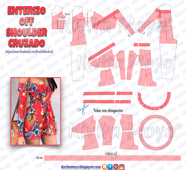 Por utlimo dibujar una tira que mida de largo 2 veces la medida de la cintura por unos 6cm de ancho que doblado medira 3cm mas margenes para el lazo.