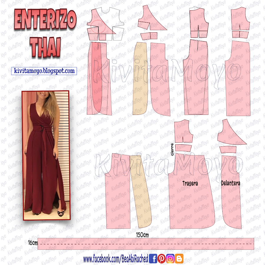 Se divide el trazado en dos partes: la superior del cuerpo y la inferior del pantalón, unidos por una cintura y encima un cintura o lazo.