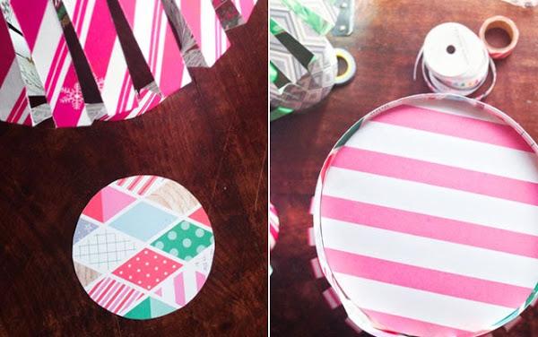 ¿Qué le hemos hecho al farolillo para actualizarlo? Primero, cambiarle el asa de papel por un asa de cinta pegada con washi tape. Que los pompones preadolescentes son mucho más cuquis que los pompones niños.