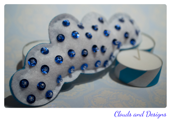 Pero ayer? me dio por ahí, y es que vi los muñequitos que tengo colgados en mi escritorio y me dije? "Inés? ¿porqué no te entretienes un ratito y haces algo con fieltro?" y me convencí a mi misma y me puse a ello, y con dos trocitos y unas cuantas lentejuelas hice la nubecita :D