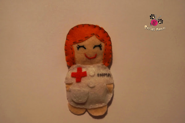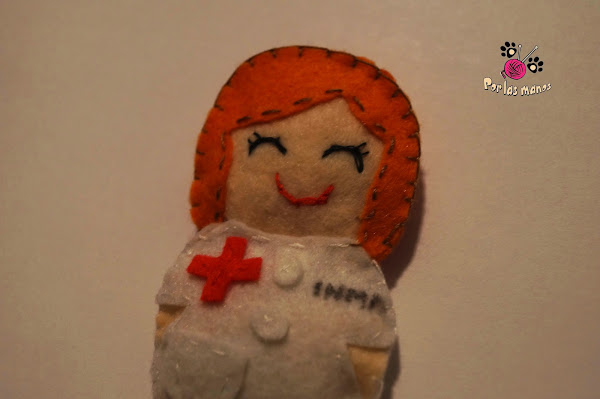 Hacía tiempo que no sacaba mis telas de fieltro! Lo echaba de menos, y es que fue el primer material con el que empecé a hacer manualidades. Hoy he hecho un broche de enfermera que me han encargado. Y mientras la hacía se me ha ocurrido una gran idea para mi siguiente muñeco de fieltro. ¡Ya lo veréis! Aquí os dejo fotos de mi enfermera. ¡Espero que os guste!