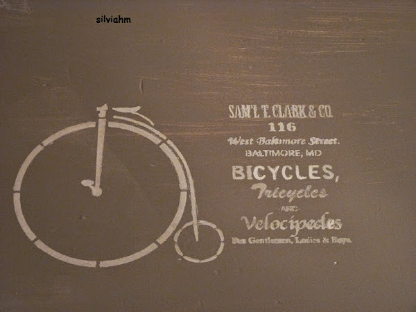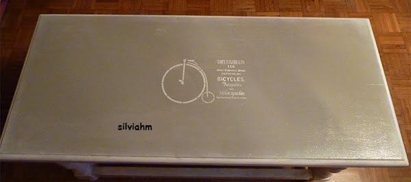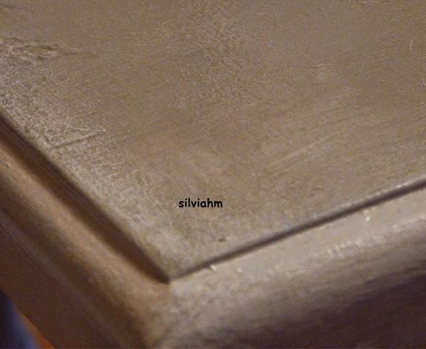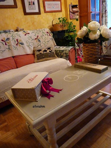 Después le toco el turno al stencil. Hace ya un tiempo que le había comprado a Lucía, de"Momentos Vintage" unas plantilas. Muchas de vosotras ya la conoceréis, pero si no es el caso, pasaros por su blog y veréis las maravillas que hace, su gusto es insuperable.Pués bien, decidí pintar la nesa del salón (sí, otra vez, no me convencía cómo me quedó la última vez; me han dicho que ya la tengo "blindada").Utilicé un gris piedra en el sobre con pátina blanca y en el resto, al contrario. En el centro, la plantilla de Lucía, divina.