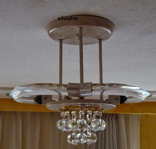 También tenía pendiente darle un nuevo aire a las lámparas del salón. Me gustan mucho las cuentas de cristal que llevan, son dos, , pero después de haber pintado la lámpara de la otra mesita, tocaba cambiar el color de base.