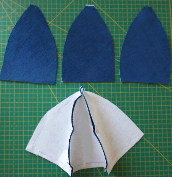 Para la gorra necesitaba que la tela tuviera consistencia y el chaleco no, Por eso entretelé toda las piezas de la gorra, en la foto podéis ver como cada pieza está entretelada y una vez pegada es cuando se unen las piezas.