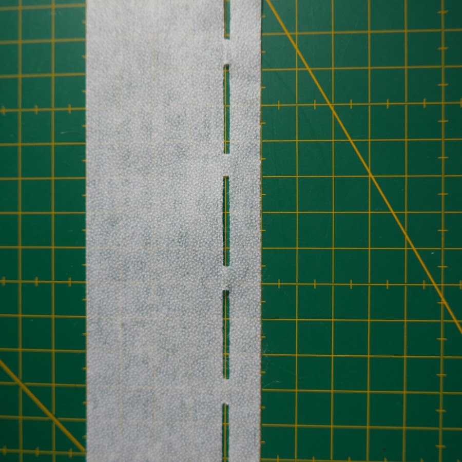 Esta es la entretela pensada para hacer de forma muy rápida cinturillas, puños, e incluso tapetas. Al seguir las ranuras que tiene la tira de entretela como referencia, conseguiremos de forma fácil que nos queden rectas las cinturillas, puños...Ah! por cierto, este tipo de entretela va genial también para asas de bolsos.