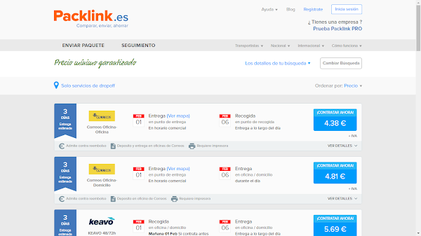 · No pierdes dinero porque Packlink te diré cual es más barato.