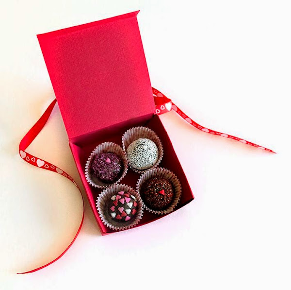 Con conitos de papel y unos corazoncitos, pedacitos de papeles de colores y un clip o una cinta tienes una envoltura sencilla y bonita para tus Trufas y chocolates.