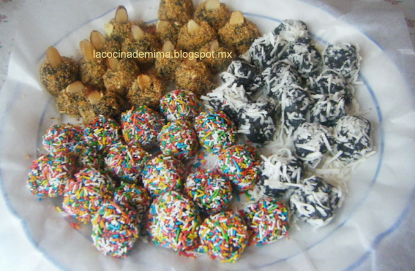 Poner cada una de las trufas en adorables capacillos de colores, las pones en un plato en la mesa y que cada quien tome su postre.